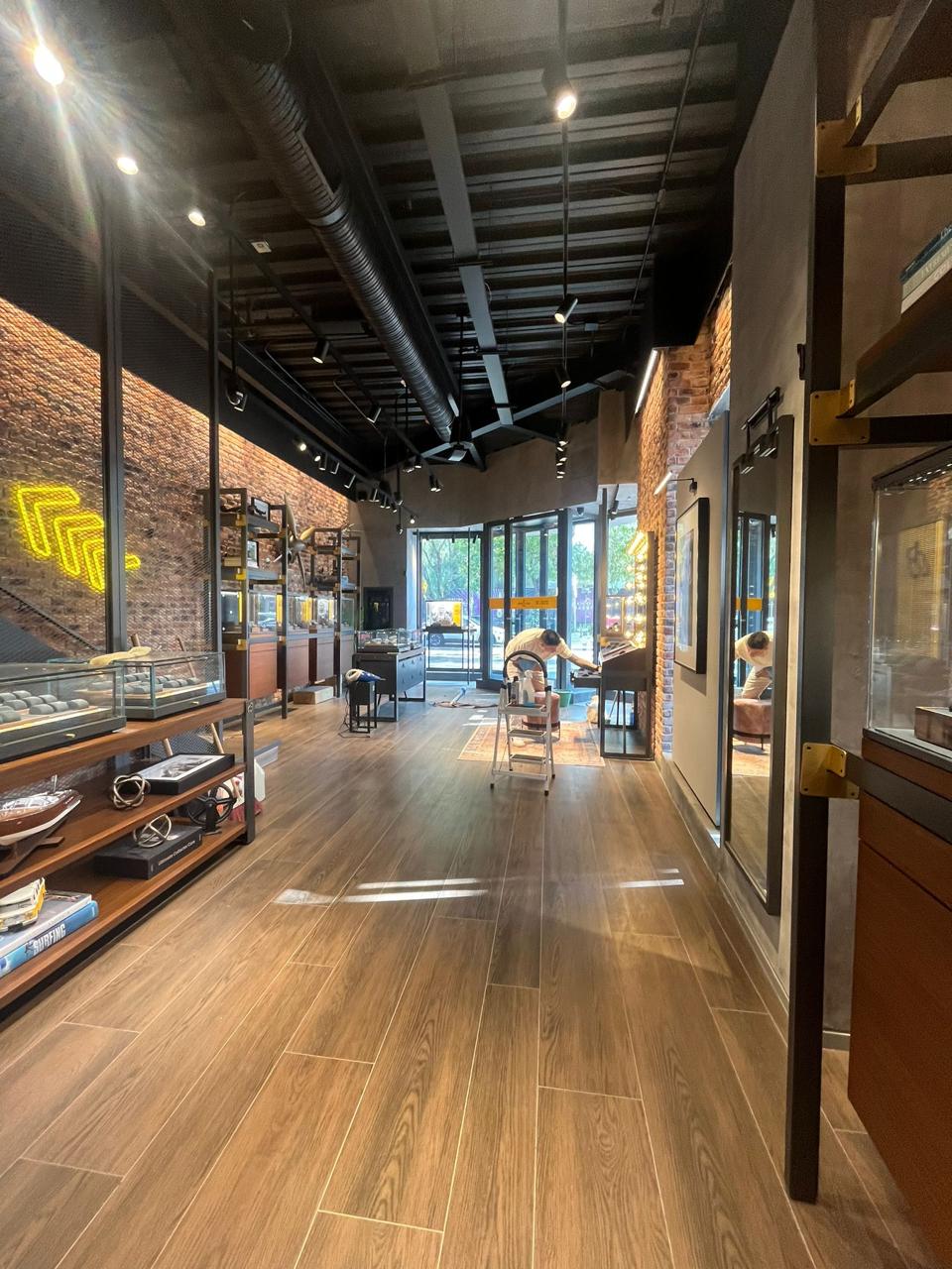 Asesoría integral en la colocación de piso en gran formato dentro del show room.